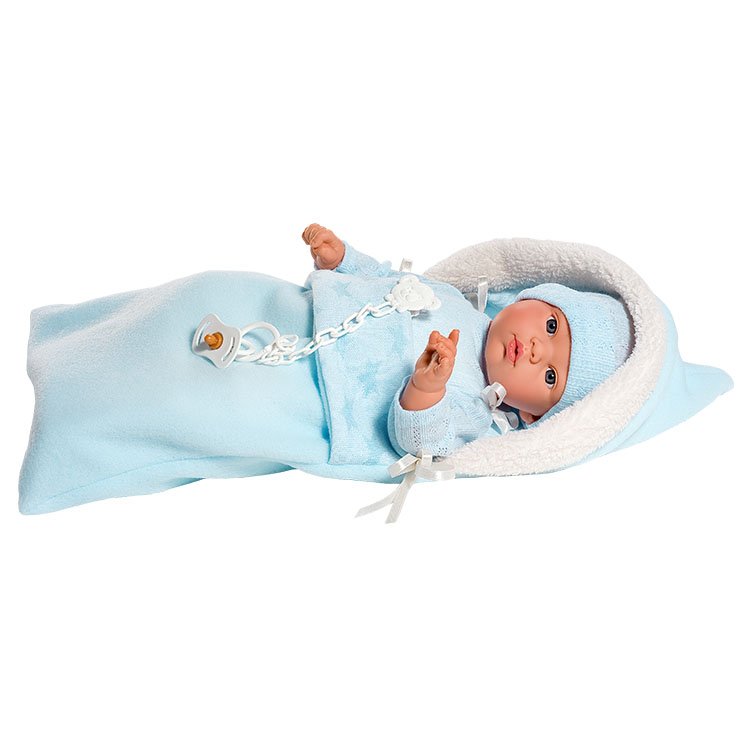 GUILLE: Bebé de 36 centímetros con pelo implantado para que puedas cepillarle. Su cuerpo es de vinilo, no está sexado y tiene articulaciones en cabeza, hombros y piernas. Tiene una carita de travieso con unos bonitos ojos azules que te encantarán. La ropita de Guille es válida para otros muñecos de la marca que tienen la misma medida y el cuerpo de tela de relleno de miraguano como son Koke, Sammy, Chinín, Nico (descatalogado en la colección 2017), Popo (descatalogado en la colección 2017) y Emma.